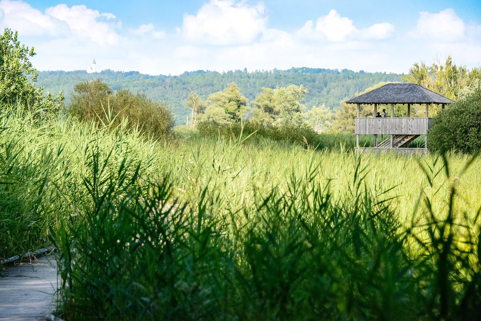 Hinter dem großen Parkplatz beim Sportplatz an der Jahnstraße geht es zum Naturbeobachtungsturm. Dort kann man seltene Vogelarten und andere heimische Tiere sowie natürlich die wunderschöne Landschaft betrachten.
