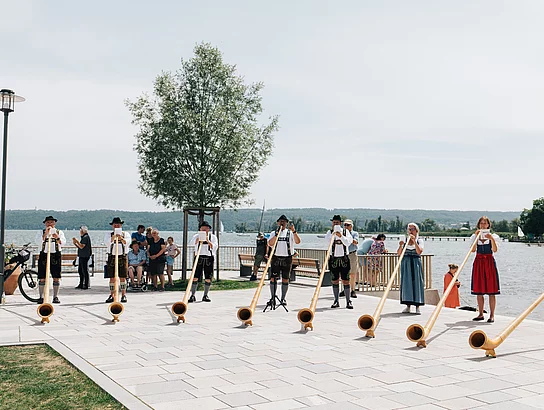 TeilnehmerInnen des Seminars „Mit dem Alphorn auf der Wies“