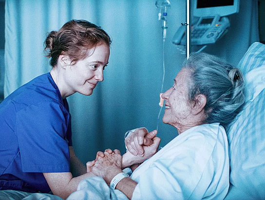 Eine lange Nachtschicht im Krankenhaus ist im Film „Heldin“ auf atemlose neunzig Minuten verdichtet. Regisseurin Petra Volpe („Die göttliche Ordnung“) greift ein brandaktuelles Thema auf. Das Ergebnis ist ein zutiefst humanistischer Blick auf den Pflegeberuf. Und zeigt die Härte, aber auch das Schöne und das Heldenhafte dieses Berufs. Nicht zuletzt ist "Heldin" ein Plädoyer dafür, wie essenziell eine gute Betreuung im Krankheitsfall für uns alle ist. Hauptdarstellerin Leonie Benesch („Das Lehrerzimmer“, „September 5“) wurde für ihre herausragende Darstellung mit dem Bayerischen Filmpreis 2025 ausgezeichnet.