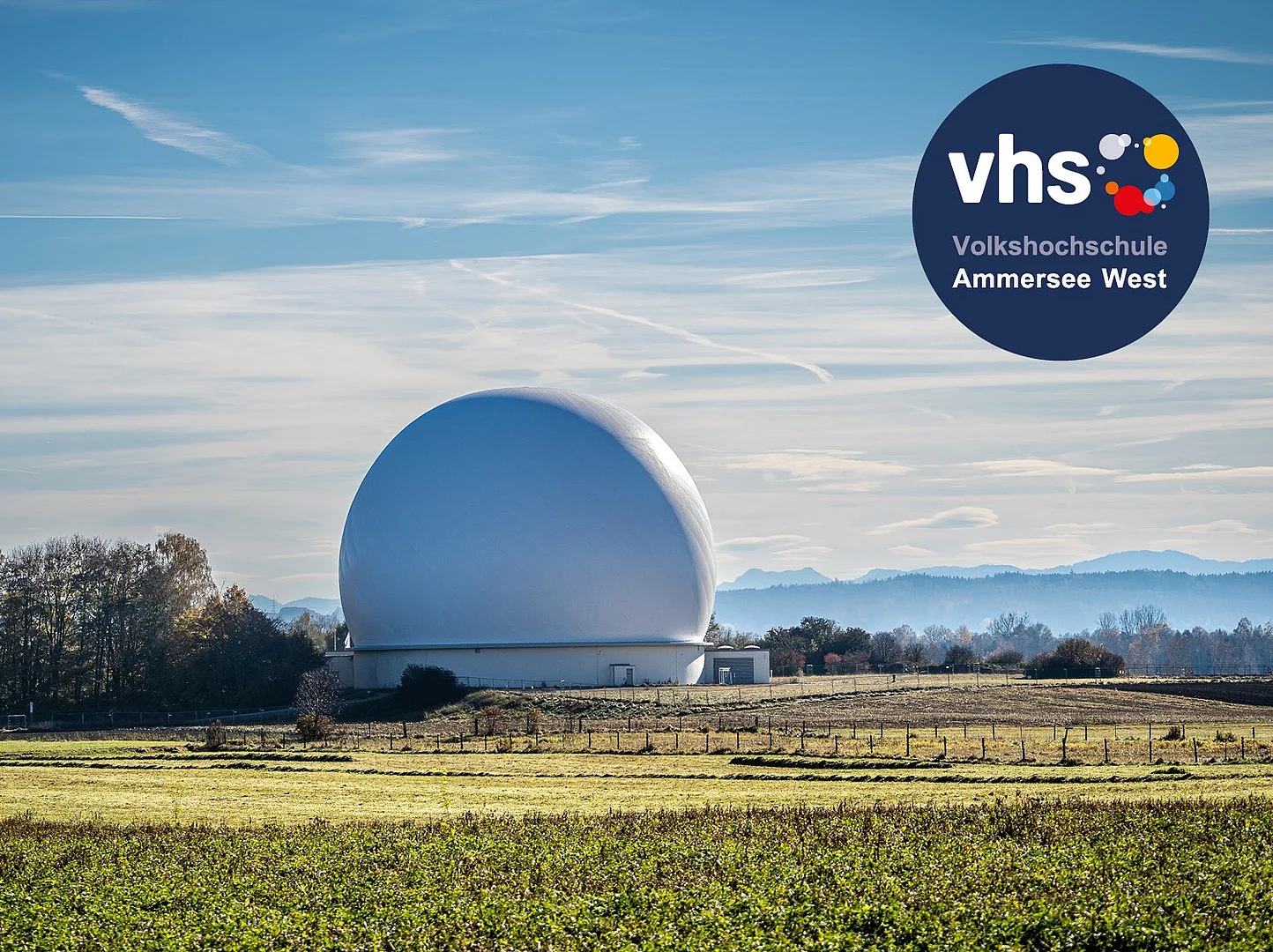 Die Erdfunkstelle Raisting ist schon von weitem als eine besondere Landmarke erkennbar. Die riesigen Satellitenschüsseln und die markante Kugel des Radoms laden zu einer Entdeckertour ein. Das Radom Raisting ist die letzte noch erhaltene Großantennenanlage aus den Anfängen der Nachrichtenübertragung. Hier flimmerten unter anderem die Live-Fernsehbilder der ersten Mondlandung 1969 und der Olympiade 1972 in München weltweit in die Wohnzimmer. Das Radom Raisting ist heute ein Industriedenkmal und kann mit seinen Ausstellungen, "50 Jahre Mondlandung" und "Virtuelle Welten", besichtigt werden. Treffpunkt: vor dem Radom. Parkmöglichkeiten unterhalb des Radoms. Auch vom Bahnhof Raisting in ca. 20 Minuten zu Fuß erreichbar.