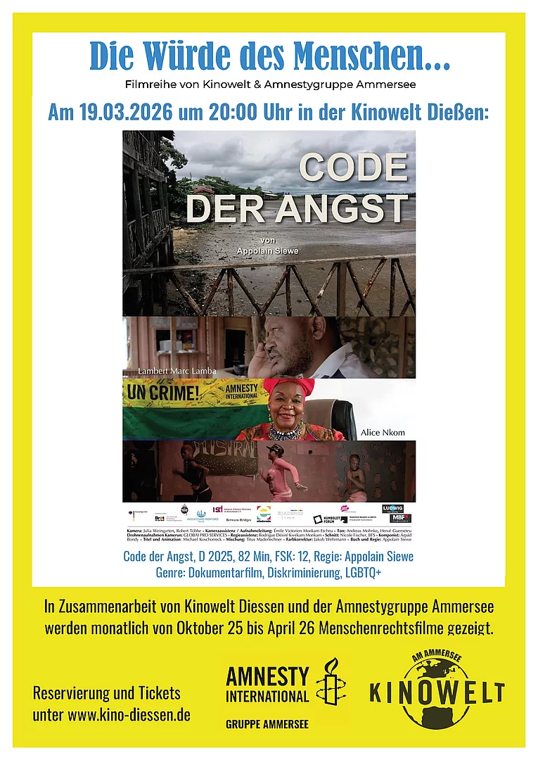 Filmreihe - Die Würde des Menschen... von Amnesty Ammersee in der Kinowelt - Film am 19.03.2026: „Code der Angst“