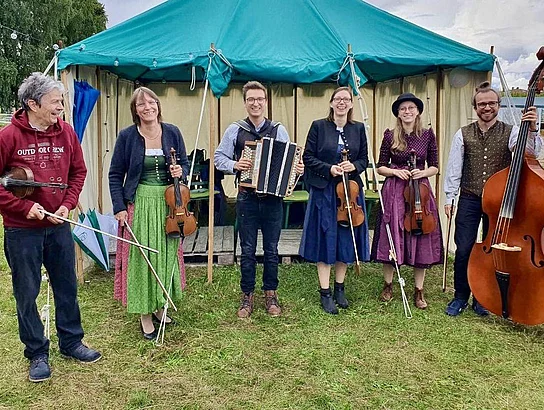 Die sechs Musikanten bringen mit ihren Streichinstrumenten frischen Wind in die traditionelle Volksmusik. Ganz ohne technischen Schnickschnack sorgen sie für einen fetzigen und natürlichen Sound, der zum Tanzen und Feiern einlädt. Mit ihrem umfangreichen Repertoire von traditionellen Melodien und Tanzweisen kommen sowohl Neulinge als auch eingefleischte Tänzer*innen in einen besonderen musikalischen Tanzgenuss.