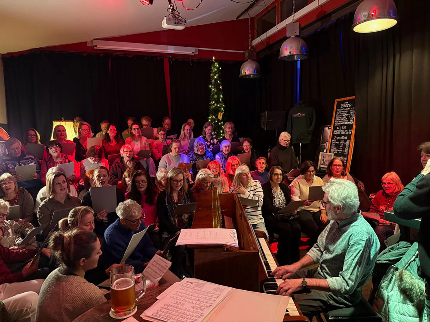 Alle Sangeslustigen sind herzlich willkommen. Nach der Chorprobe bietet noch ein musikalischer Stammtisch Gelegenheit zum Austausch.