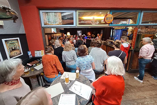 Gemeinsam fröhliche Lieder anstimmen – ganz ungezwungen und aus der puren Lust am Singen. Gesangsbücher werden vor Ort an alle Teilnehmer verteilt, die Lieder wechseln und Thomas leitet und begleitet am Klavier. Eure trockenen Kehlen könnt ihr auch während des Singens und danach an der Bar ölen.