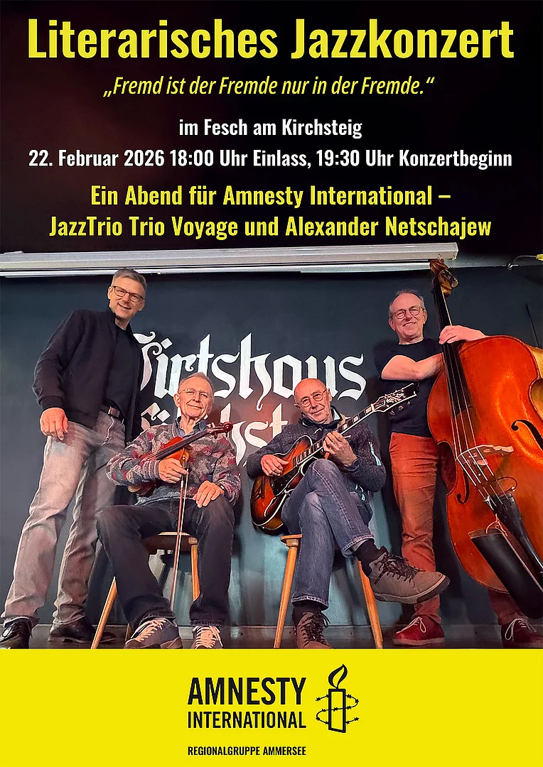 „Fremd ist der Fremde nur in der Fremde.“ Ein Abend für Amnesty International – Alexander Netschajew und JazzTrio Trio Voyage