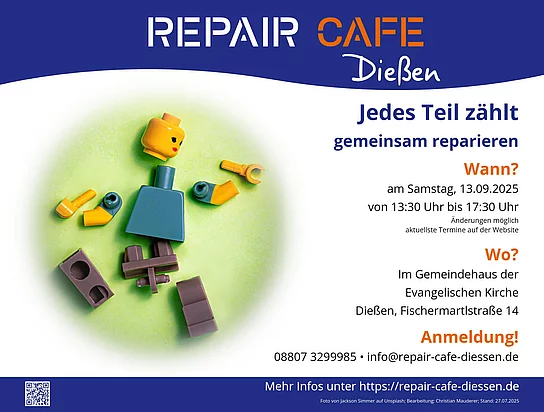 Wenn Sie einen Reparaturfall haben, melden Sie sich bitte an unter info@repair-cafe-diessen.de oder telefonisch unter 08807 3299985. Das hilft uns, zu planen und die richtigen Werkzeuge mitzubringen. Außerdem sind wir meistens so ausgebucht, dass wir keine unangemeldeten Fälle dazwischen schieben können.