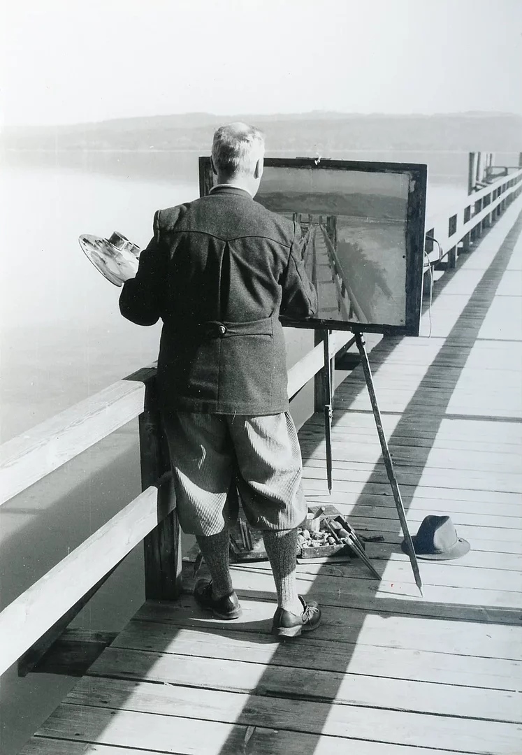 Während der Starnberger See, der „Fürstensee“, immer schon etwas mondäner war, zog vor allem das Westufer des „Bauernsees“ die Künstlerinnen und Künstler an, um sich dort niederzulassen und zu arbeiten. Wohl auch deshalb, weil sie sich das Leben dort eher leisten konnten und die Orte Schondorf, Utting und Dießen schon relativ früh mit der Eisenbahn erreichbar waren. Doch trotz der vielen Künstler im Ort kann man, anders als in Utting-Holzhausen, kaum von einer Künstlerkolonie sprechen – zu unterschiedlich waren die Charaktere und Stile, die am Ammersee aufeinandertrafen. Der Vortrag stellt die wichtigsten Maler zwischen 1876 und 1976 vor, denen der „Künstlerort“ Dießen seinen Beinamen zu verdanken hat: den „Entenmaler“ Alexander Koester, den Landschafter Hans Schilcher, den Mitbegründer des Simplicissimus Thomas Theodor Heine, den Maler und Literaten Robert Franz Curry, den Maler Rudolf Schoeller, den Bauhausschüler Fritz Winter und andere.