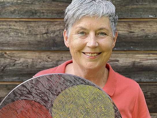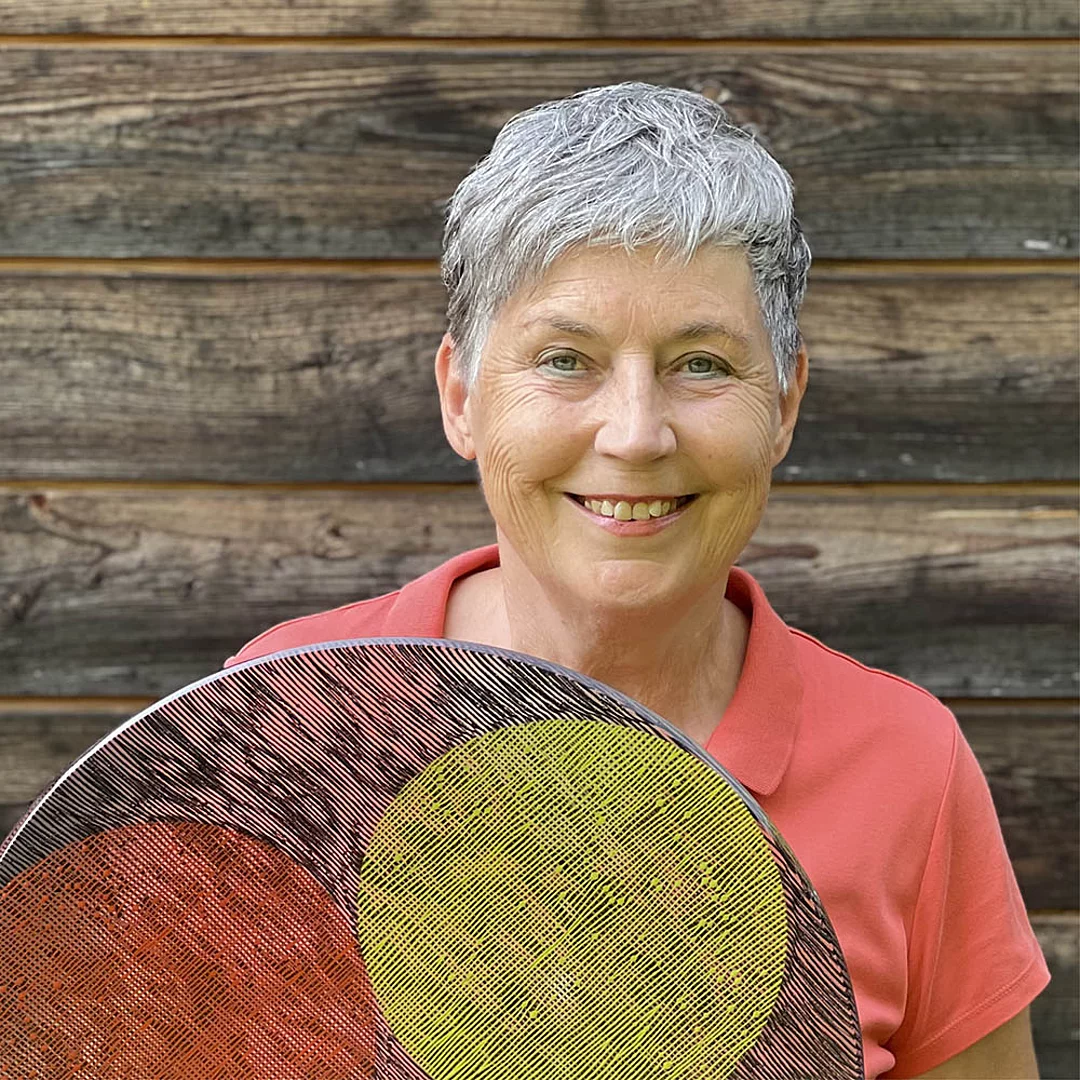 Ulrike Umlauf-Orrom ist gelernte Keramikerin, studierte dann Industrie Design und fand schließlich im Masterstudium zum Glas. Seit Jahren experimentiert sie mit der Fusing-Technik und verschmilzt eigens eingefärbte Glasscheiben in ihrem Brennofen. Fasziniert von japanischer Textilkunst »verwebt« sie farbige Fäden aus Emaille zu Glas von fast stofflicher Anmutung.