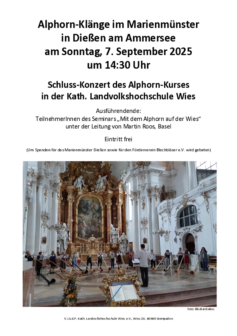 Auch in diesem Jahr lädt „Cäcilia Nova“, der Chor der Musikschule Dießen, am Sonntag, 4. Advent (21.12.2025, 17 Uhr) zu einem stimmungsvollen, vorweihnachtlichen Konzert in die Winterkirche St. Stephan, direkt neben dem Marienmünster, ein. Auf dem Programm stehen „A Ceremony of Carols“ von Benjamin Britten (Harfe: Felix Hahn), sowie Werke von Jan Wilke und John Rutter. Dirigiert wird das Konzert von der neuen Chorleiterin Inga Brüseke, die - noch jung an Jahren - bereits auf eine beachtliche Karriere in ihrem Fach zurückblicken kann. Der Eintritt ist frei, Spenden werden gerne entgegengenommen.