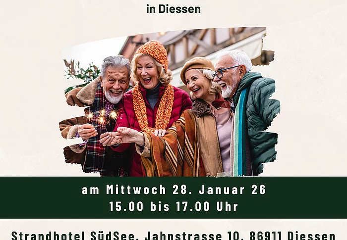 Und weiter geht es mit dem Angebot für ältere Bürger in Dießen. Das nächste Seniorencafé findet am Mittwoch, 28.01.2026 im Strandhotel SüdSee statt. Für leckere Kuchen ist gesorgt! Anmeldung bitte per E-Mail an seniorencafe-diessen@gmx.de