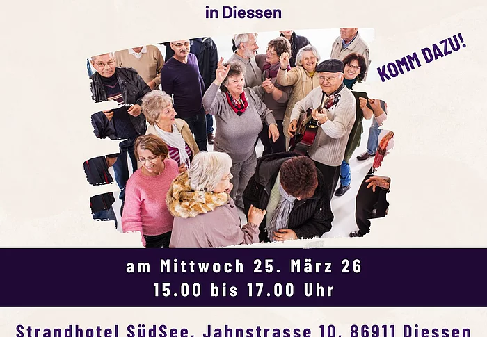 Und weiter geht es mit dem Angebot für ältere Bürger in Dießen. Das nächste Seniorencafé findet am Mittwoch, 25.3.2026 im Strandhotel SüdSee statt. Für leckere Kuchen ist gesorgt! Anmeldung bitte per E-Mail an seniorencafe-diessen@gmx.de