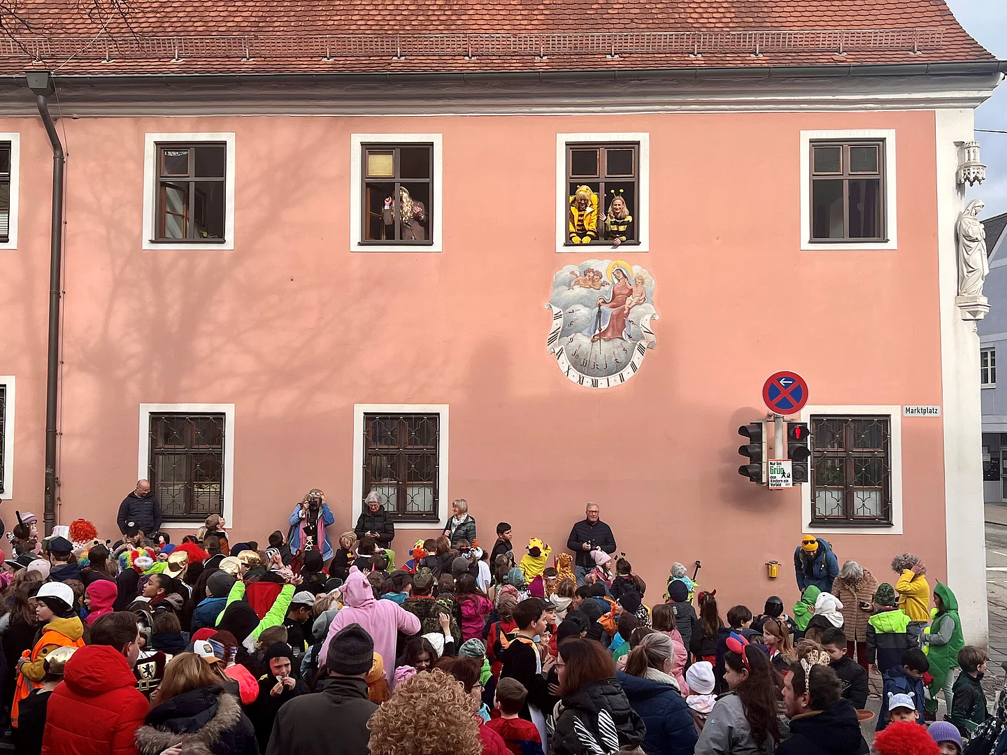 Bunter Faschingsumzug mit Sturm auf das Dießener Rathaus der Carl-Orff-Grundschule