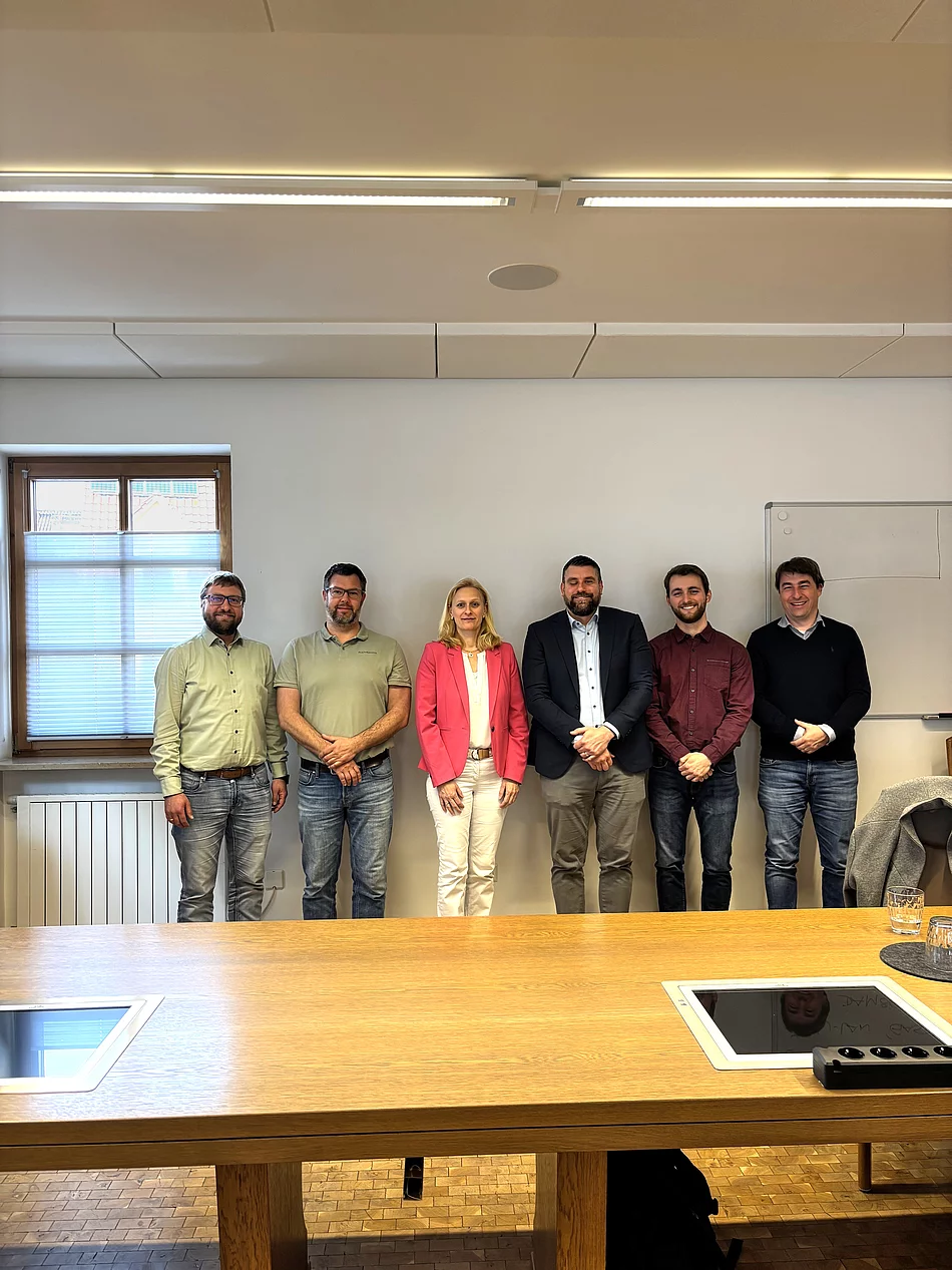 Mit bei der Auftaktveranstaltung waren Tim Hennig von KLIMA³, Alexander Lange (Bautechnik), Bürgermeisterin Sandra Perzul, Projektleiter Steffen Mayer (Bayernwerk Netz), Béla van Rinsum (INEV) und Kommunalbetreuer Stefan Drexl (Bayernwerk Netz).