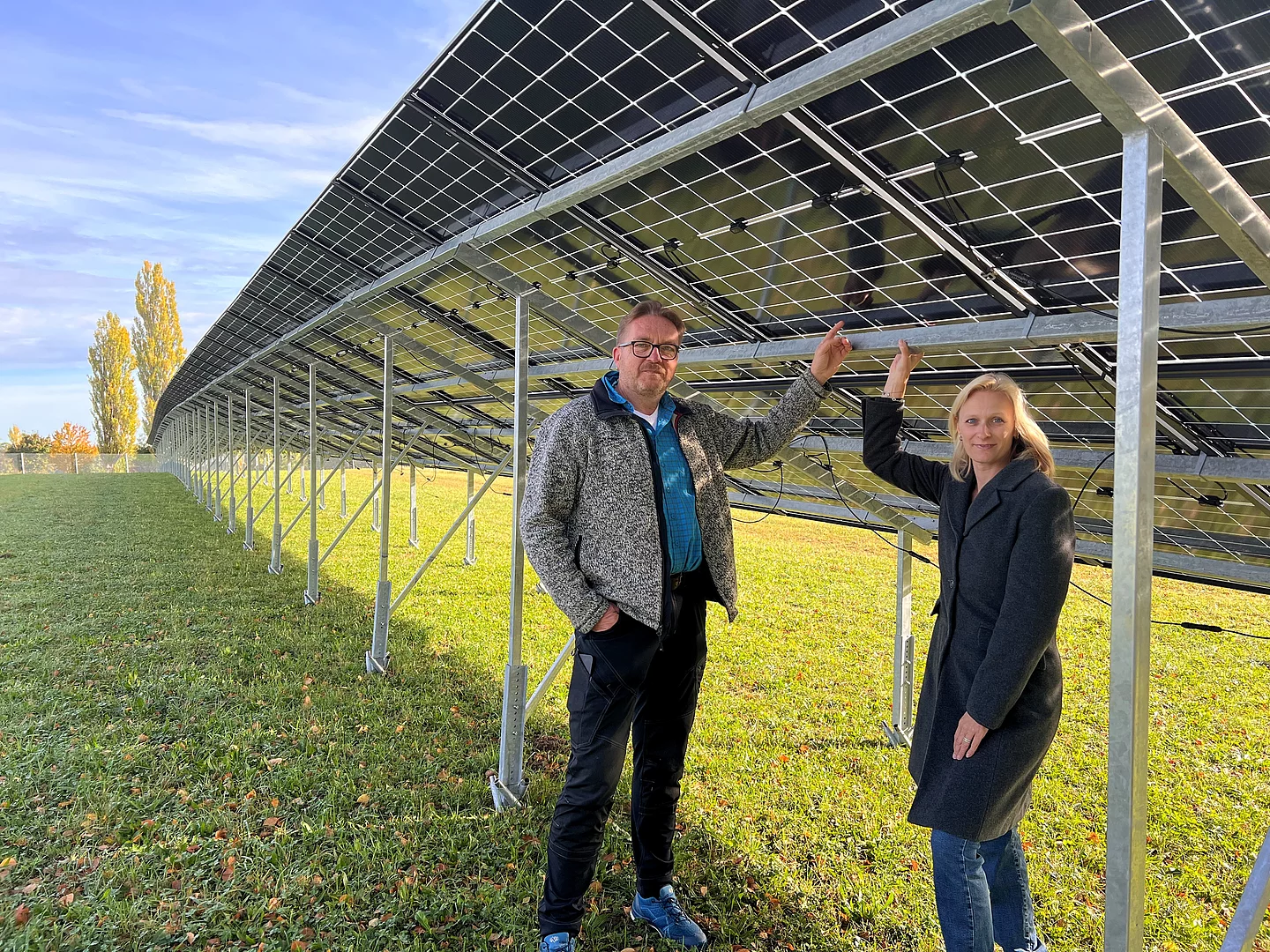 Die Mehrleistung von bifazialen Modulen liegt zwischen 5 und 30%, zudem sind sie in Glas-Glas Bauweise gefertigt, das heißt sie haben keine Plastikfolie auf der Rückseite. Darauf wollte man auch besonders wegen der Lage im Wasserschutzgebiet verzichten.