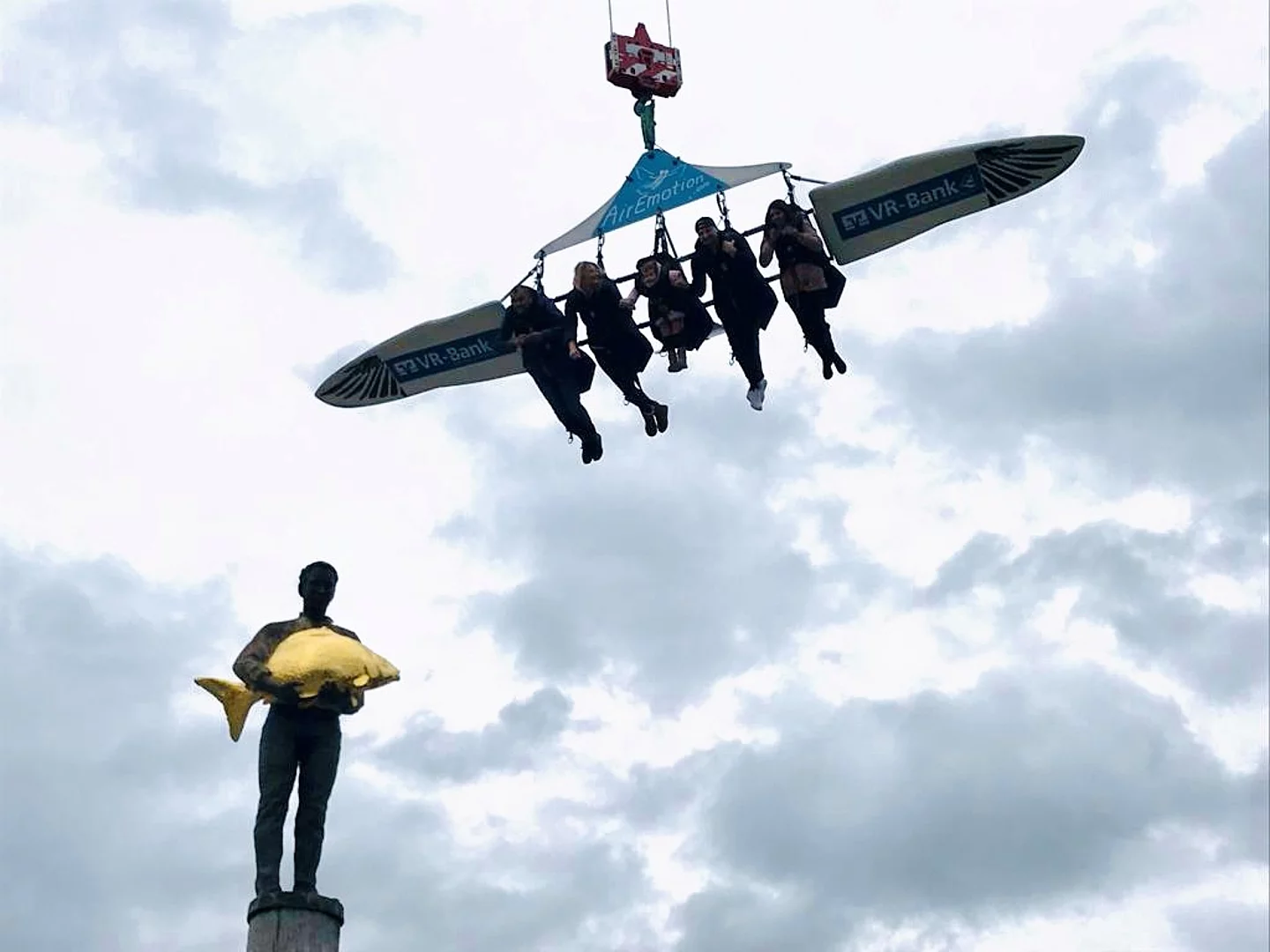 Neben dem Bühnenprogramm gibt es für die kleinen Gäste Kinderschminken, Water Balls und - für die größeren und die ganz mutigen, ein Flug über die Seeanlagen.
