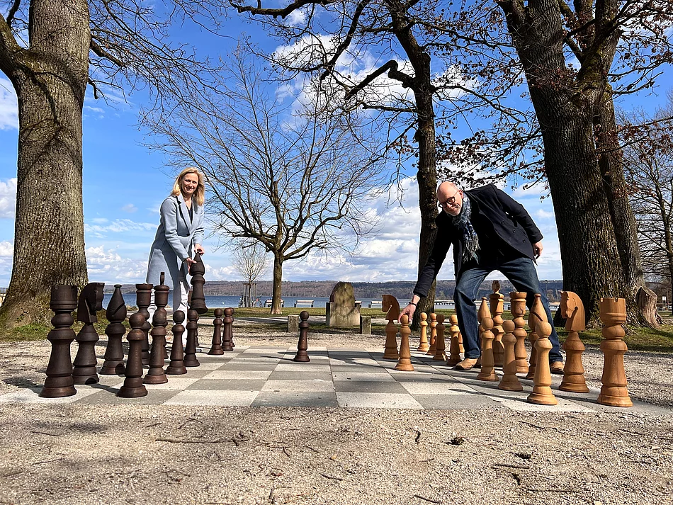 In den Dießener Seeanlagen kann wieder Schach gespielt werden. Das Spielfeld in der Nähe des Mühlbachs ist nach dem Winter in vollem Umfang nutzbar. Bereits vergangene Woche wurden schön gedrechselte Figuren aus gewachstem Eichenholz angeliefert und in einer Holzkiste neben dem Schachfeld platziert. Hergestellt wurden Türme, Springer, Damen und Co. in Dinkelsbühl. Bei der Beschaffung arbeiteten das Rathaus und Gemeinderat Michael Lutzeier unkompliziert und unbürokratisch zusammen. Lutzeier, selbst passionierter Schachspieler machte die produzierende Firma in Dinkelsbühl ausfindig. Den Auftrag erteilte das Rathaus.
