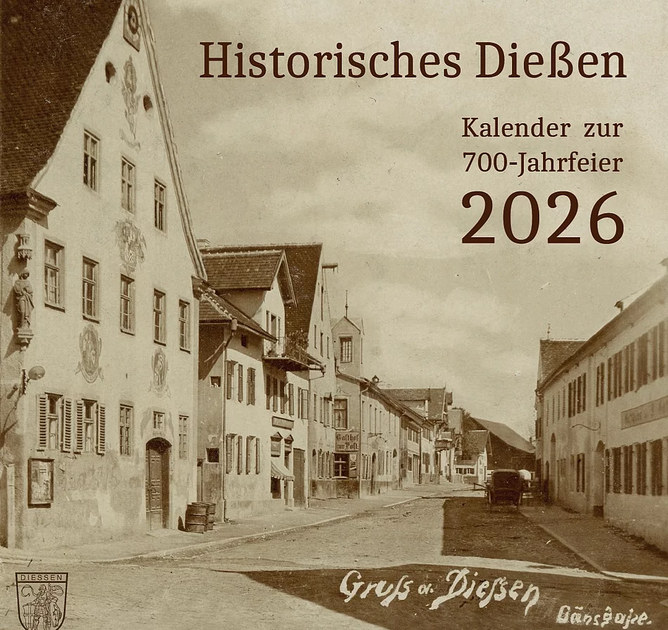 Zur Einstimmung auf die 700-Jahr-Feier 2026 präsentiert der Markt Dießen einen Bildkalender mit den schönsten und interessantesten historischen Ortsansichten aus dem Marktarchiv.