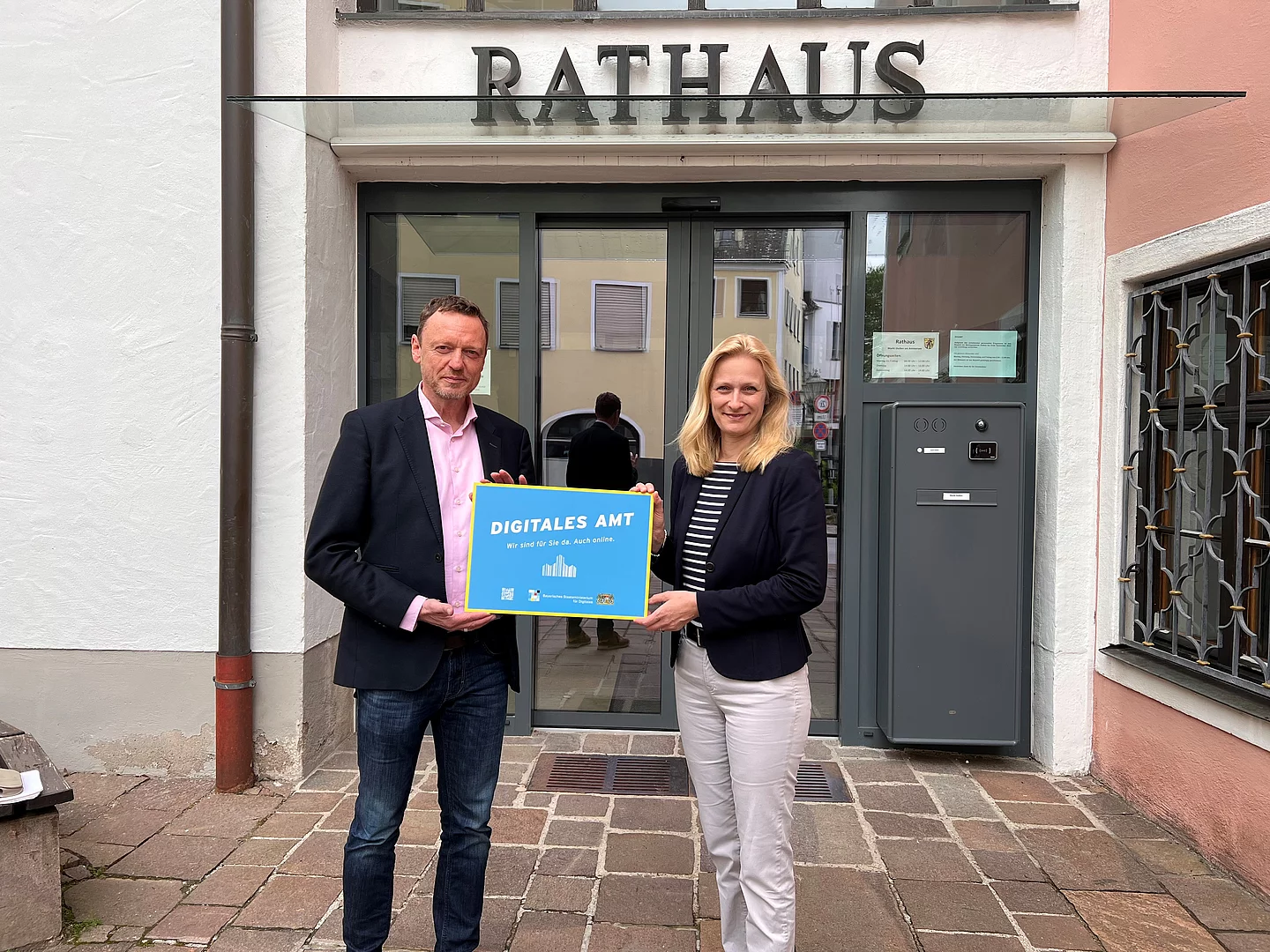 Die Kommune erhielt jetzt die neue Auszeichnung von Bayerns Digitalministerin Judith Gerlach. Als „Digitales Amt“ dürfen sich bayerische Kommunen bezeichnen, die bereits mindestens 50 kommunale und zentrale Online-Verfahren im sogenannten BayernPortal verlinkt haben. Diese Kommunen werden zudem auf der Webseite des Staatsministeriums für Digitales veröffentlicht, um zu zeigen, welche Kommunen bei der Digitalisierung bereits gut vorangekommen sind.