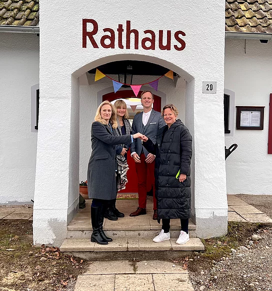 Mit dem Ergebnis der Umbauarbeiten, die erst im Oktober 2022 begannen, zeigte sich auch Bürgermeisterin Sandra Perzul bei der symbolischen Schlüsselübergabe sehr zufrieden. Die Regenbogen-gruppe im alten Rathaus sei ein sehr freundlicher und kindgerechter Ort geworden. Hier werden die kleinen Mädchen und Jungen eine schöne und behütete Zeit verbringen, so Bürgermeisterin Perzul. Der Außenbereich wird nun so schnell wie möglich auch für das Spielen im Freien hergerichtet. Zum Start war dies aus Zeitgründen nicht möglich.