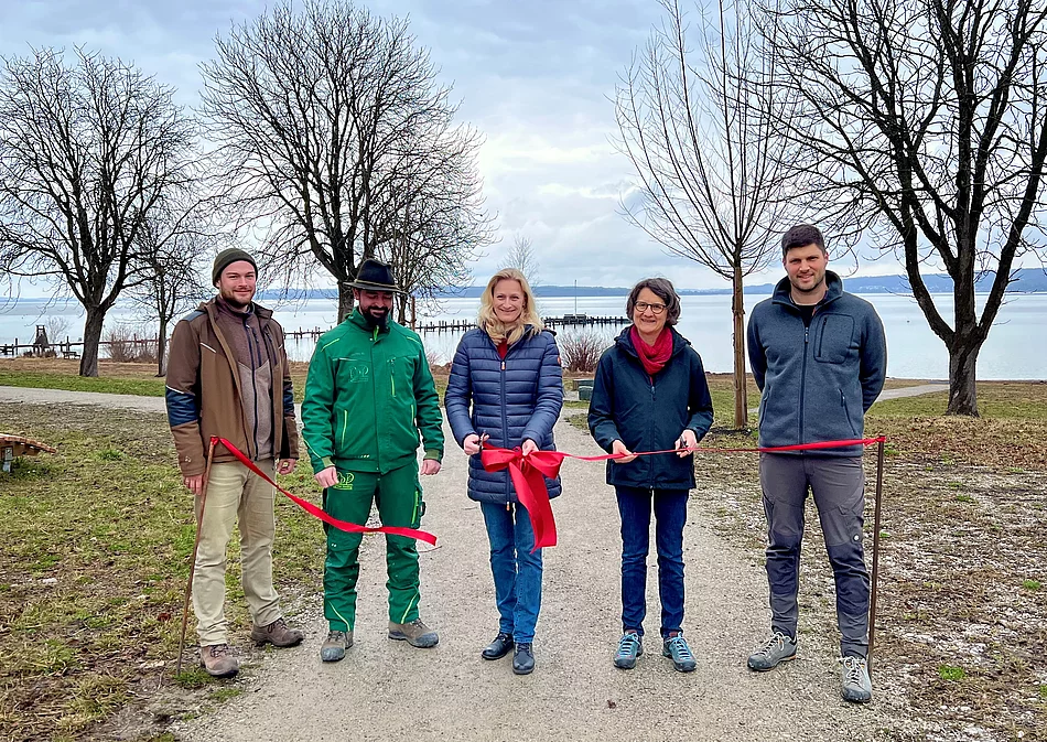 Kurz vor Frühlingsbeginn ist es soweit: Das ehemalige verwilderte Campinggelände am See wurde zu einer naturnahen Grünfläche mit Naturstrand umgestaltet und am 12.03.2026 von Bürgermeisterin Sandra Perzul feierlich eingeweiht.