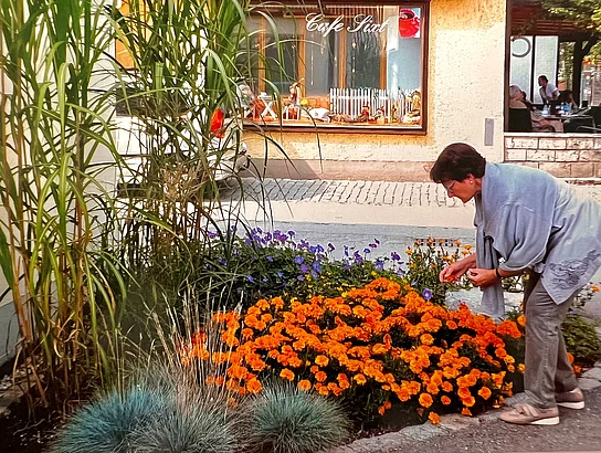 Sie wolle die schmuddeligen Ecken im Ortskern etwas schöner gestalten, mit diesem Vorschlag wandte sich Irmi Hofheinz vor vielen Jahren an den damaligen Bürgermeister Herbert Kirsch. Der anschließende gemeinsame Termin machte deutlich, wo sie Handlungsbedarf beziehungsweise Verbesserungspotential gesehen hatte: Es waren die Flächen am Untermüllerplatz rund um den Brunnen und entlang des Bachs, vor der Bahnunterführung in Richtung See und im Bereich der Bahnhofsstraße 5.