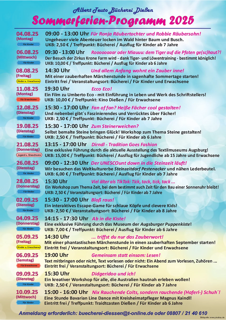 Sommerferienprogramm der Albert Teuto Bücherei